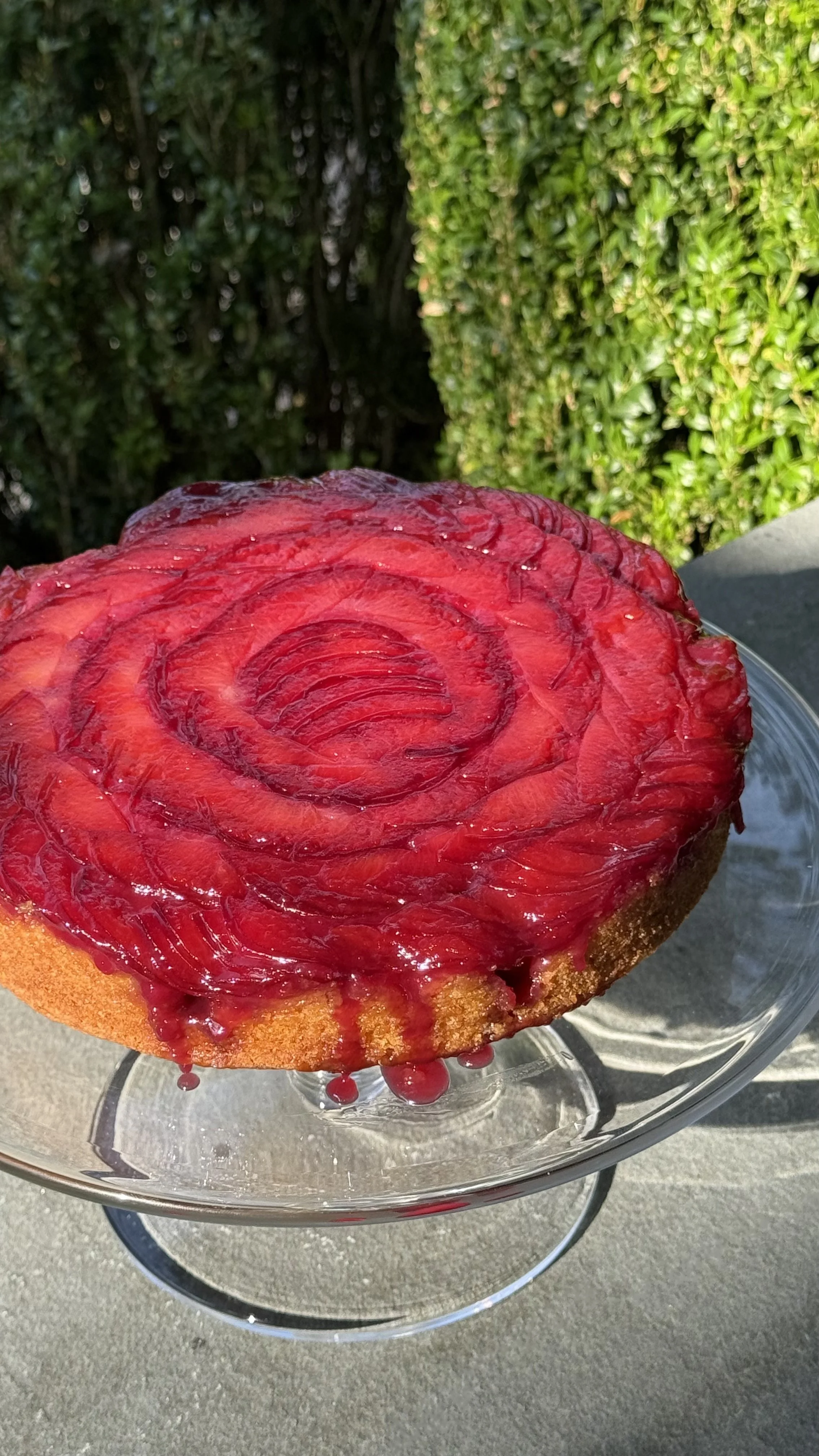 a rich brown butter and almond flour studded cake batter topped with jammy, thinly sliced red plums for a perfect summer dessert